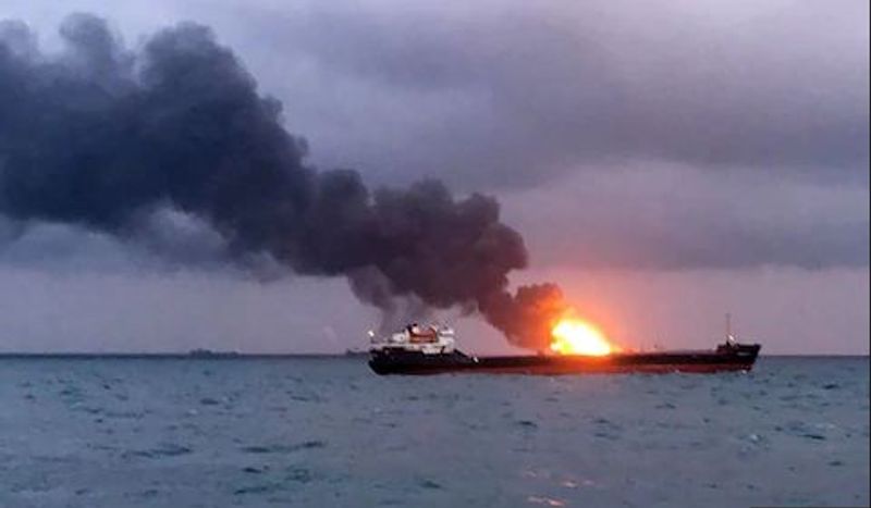 જહાજોમાં આગ લાગવાની દુર્ઘટના સોમવારે રશિયાની સમુદ્રી સીમામાં થઈ હતી. આ બંને