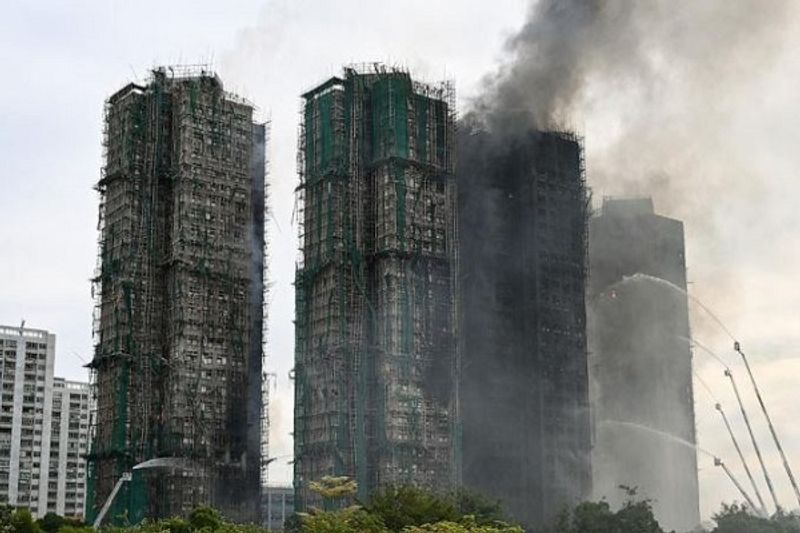 હોંગકોંગના ઉત્તરી જિલ્લા તાઈ પોમાં વાંગ ફુક કોર્ટ હાઉસિંગ કોમ્પ્લેક્સના આઠ 32 માળના ટાવરમાંથી સાત આગમાં બળીને ખાખ થઈ ગયા. જ્યારે આગ લાગી અને ઝડપથી ફેલાઈ ત્યારે આઠ ટાવરવાળા આ સંકુલ, જેમાં 4,600 થી વધુ લોકો રહે છે, વાંસના પાલખ અને જાળી દ્વારા ઢાંકેલી હતી.