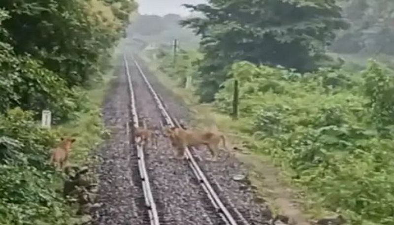 - એક સિંહ, એક સિંહણ અને ત્રણ બચ્ચાંના રેલવે ટ્રેક પર સુતા હતા,