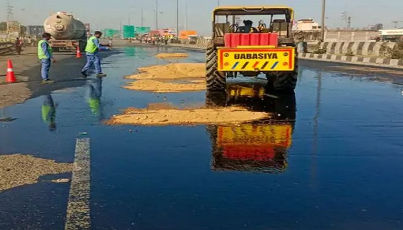 - 500 મીટર સુધી હાઈવે લપસણો થતાં અનેક વાહનો સ્લીપ થયાં,