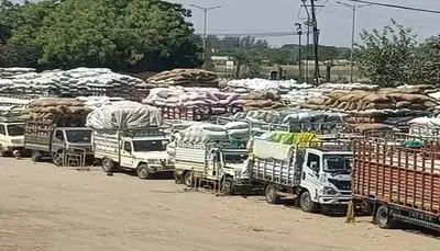 રાજકોટ યાર્ડમાં ધાણા, ઘઉં જીરૂ અને કપાસની ધૂમ આવક, યાર્ડ બહાર 2500 વાહનોની લાંબી લાઈનો