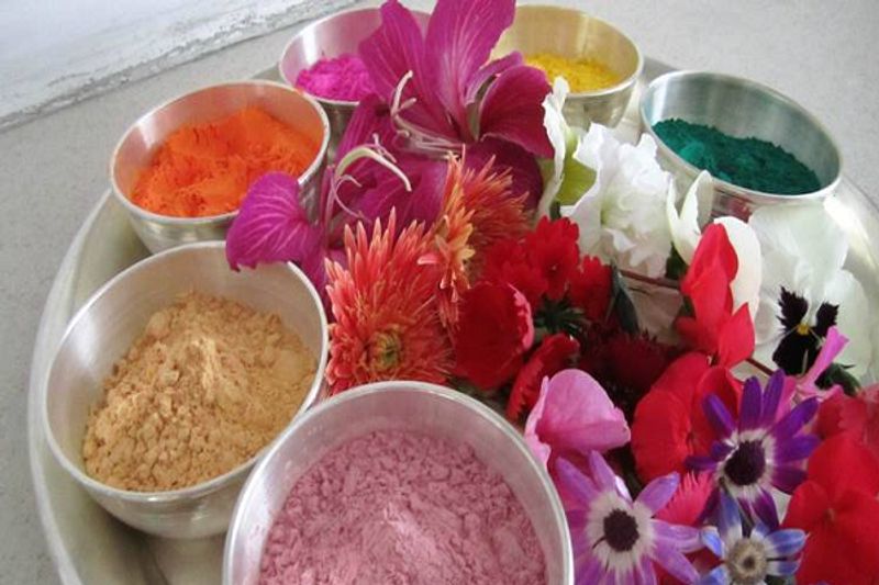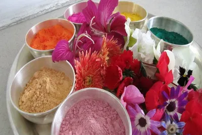 પીળો રંગ: પીળા રંગ માટે ગલગોટાના ફૂલો અને હળદરનો ઉપયોગ કરો. ગલગોટાના ફૂલોને ઉકાળો અને તેનો રંગ કાઢો અને પછી તેમાં હળદર ઉમેરો અને તેને એરોરૂટ સાથે મિક્સ કરો. આ રંગ ફક્ત કુદરતી જ નથી પણ ત્વચા પર ખૂબ જ કોમળ પણ છે.
