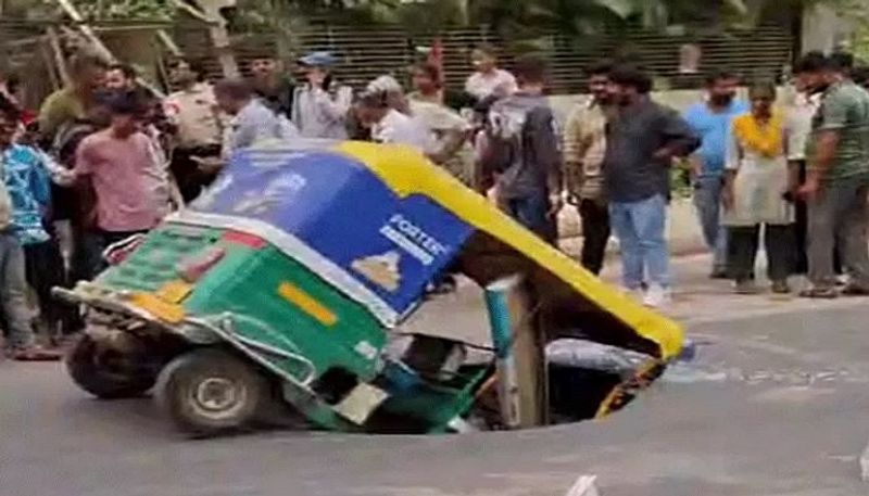 અમદાવાદમાં મકરબા મેઇન રોડ પર ભૂવો પડતા રિક્ષા ભૂવામાં ઘૂંસી ગઈ