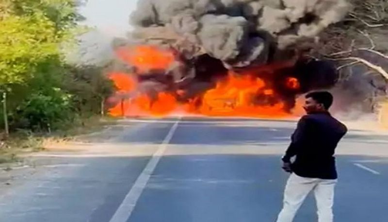 ડીસા નજીક ચોખા ભરેલી ટ્રક તેલ ભરીને જતી બે ટ્રકો સાથે અથડાતા લાગી આગ, એકનું મોત