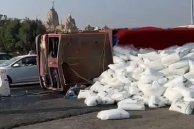 અમદાવાદ-રાજકોટ હાઈવે પર ચોટિલા પાસે ટ્રકે પલટી મારતા ટ્રાફિક જામ સર્જાયો