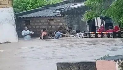 જૂનાગઢઃ સોરઠ પંથકમાં ગઈકાલે બુધવારે ભારે વરસાદ પડતા કેટલાક વિસ્તારોમાં જનજીવન સંપૂર્ણપણે ખોરવાઈ ગયું છે. જુનાગઢ જિલ્લામાં મેઘરાજાએ પોતાનું રૌદ્ર સ્વરૂપ બતાવતા મેંદરડા, વંથલી અને કેશોદ સહિતના તાલુકાઓમાં જળબંબોળની સ્થિતિ સર્જાઈ છે. જિલ્લામાં ભારે વરસાદને લીધે હજુ 35 ગામો સંપર્ક વિહોણા બન્યા છે. તંત્ર દ્વારા અસરગ્રસ્ત ગામોનો સંપર્ક કરવાના પ્રયાસો કરવામાં આવી રહ્યા છે. જિલ્લાના આલિધ્રા સહિત ગામોમાં ઘરોમાં પાણી ઘૂસી ગયા છે અને લોકો મુશ્કેલીમાં મુકાયા છે.