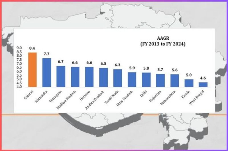 ઉલ્લેખનીય છે કે, વૃદ્ધિને સચોટ રીતે સમજવા માટે લાંબા ગાળાના પ્રદર્શનને વાસ્તવિક દ્રષ્ટિએ એટલે કે કોન્સ્ટન્ટ પ્રાઇસિસ પર માપવામાં આવે છે. આ ફુગાવાની અસરને દૂર કરે છે અને ઉત્પાદન અને આર્થિક પ્રવૃત્તિમાં વાસ્તવિક વધારો દર્શાવે છે. તેના આધારે, 2012-13થી 2023-24ના સમયગાળા દરમ્યાન ગુજરાતે સરેરાશ 8.42% વૃદ્ધિ દર હાંસલ કર્યો છે, જે ₹10 લાખ કરોડથી વધુની અર્થવ્યવસ્થા ધરાવતા તમામ મુખ્ય રાજ્યોમાં સૌથી વધુ છે. આ સાથે ગુજરાતે કર્ણાટક (7.69%) અને તમિલનાડુ (6.29%)ને પણ પાછળ છોડી દીધા છે. એવા સમયમાં જ્યારે મોટા અર્થતંત્રો સામાન્ય રીતે સ્ટ્રક્ચરલ સેચ્યુરેશનના કારણે ધીમા પડી જાય છે, પરંતુ ગુજરાત તેના મજબૂત ઔદ્યોગિક આધાર, રોકાણ-મૈત્રીપૂર્ણ વાતાવરણ, મજબૂત માળખાગત સુવિધાઓ અને કાર્યક્ષમ નીતિઓને કારણે ઝડપથી વિકાસ પામી રહ્યું છે.