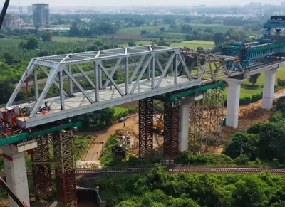 અમદાવાદઃ નેશનલ હાઇ સ્પીડ રેલ કોર્પોરેશન લિમિટેડ (NHSRCL) 22મી ઑક્ટોબર 2024ના રોજ બીજા સ્ટીલ બ્રિજને સફળતાપૂર્વક લોંચ કરવામાં આવ્યો. 60-મીટરનો સ્ટીલ બ્રિજ હતો મુંબઈ-અમદાવાદ બુલેટ ટ્રેન માટે વડોદરાની બાજવા - છાયાપુરી કોર્ડ લાઇન પર લોન્ચ કરવામાં આવી પ્રોજેક્ટ MAHSR કોરિડોર માટે આયોજિત 28 સ્ટીલ બ્રિજમાંથી આ પાંચમો પૂર્ણ થવાનો છે. આ 645-MT સ્ટીલ બ્રિજ, જે 12.5 મીટર ઉંચાઈ અને 14.7 મીટર પહોળાઈ ધરાવે છે,