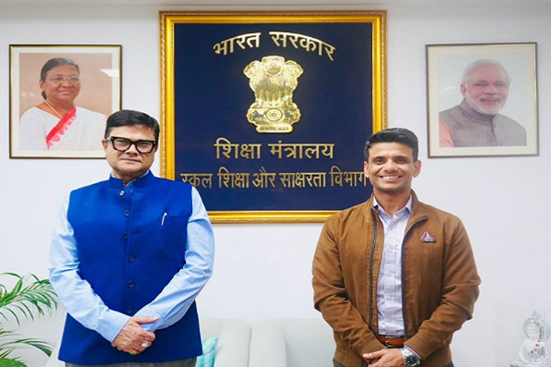 કેપ્ટન શુભાંશુ શુક્લાએ નવી દિલ્હીમાં શાળા શિક્ષણ અને સાક્ષરતા વિભાગના સચિવ સંજય કુમાર સાથે મુલાકાત કરી