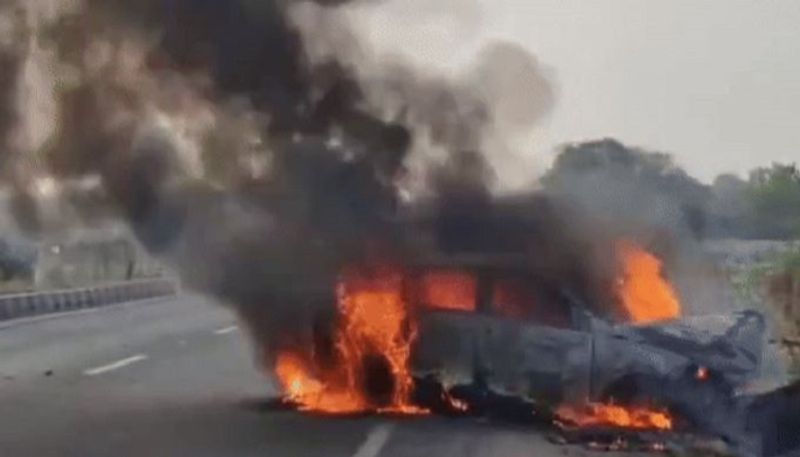 વડોદરા હાઈવે પર કૂતરાને બચાવવા જતા કાર ઝાડ સાથે અથડાતા આગ લાગી