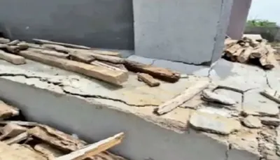 ભાભરના વજાપુર જુના ગામની નવનિર્મિત પ્રાથમિક શાળાની દીવાલોમાં પ્રથમ વરસાદમાં તિરાડો પડી