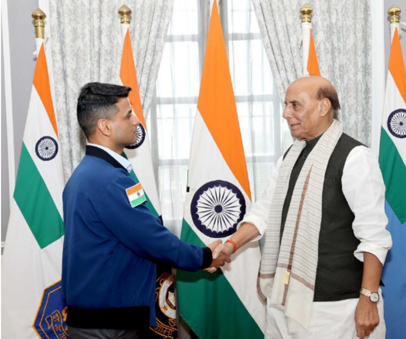 અવકાશયાત્રી શુભાંશુ શુક્લા સાથે સંરક્ષણ પ્રધાન રાજનાથ સિંહે મુલાકાત કરી