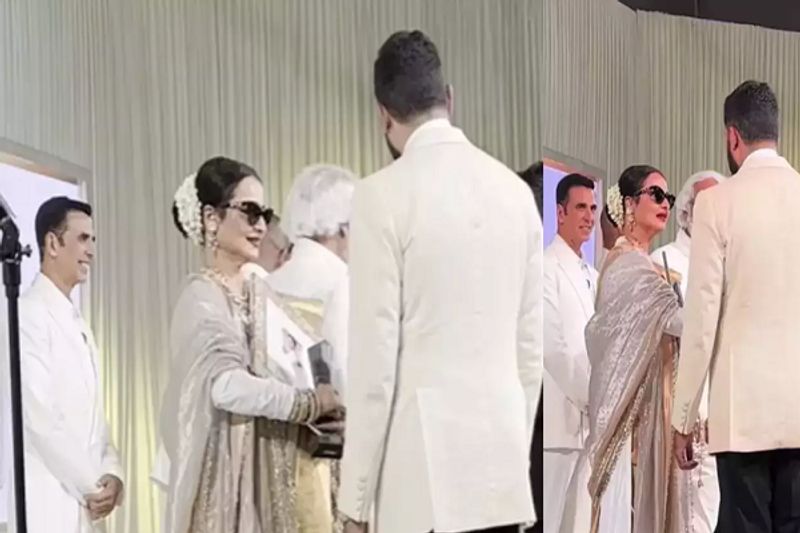 બોલિવૂડ સેલેબ્સના નામ ઘણીવાર કોઈને કોઈ સાથે જોડવામાં આવે છે. કેટલાક લિંકઅપ્સ હંમેશા યાદ રહે છે. જ્યારે પણ બોલિવૂડની પીઢ અભિનેત્રી રેખાનું નામ લેવામાં આવે છે, ત્યારે અમિતાભ બચ્ચનનું નામ આપમેળે જ લેવામાં આવે છે. અમિતાભ બચ્ચન ઉપરાંત, રેખાનું નામ ઘણા અન્ય કલાકારો સાથે જોડાયું છે. અક્ષય કુમાર પણ તેમાંથી એક છે. રેખા અને અક્ષયે ફિલ્મ 'ખિલાડીયોં કા ખિલાડી'માં સાથે કામ કર્યું હતું. તે સમયે અહેવાલો આવ્યા હતા કે રેખા અક્ષયને પસંદ કરવા લાગી છે. હવે ઘણા વર્ષો પછી, જ્યારે તે બંને સાથે આવ્યા, ત્યારે રેખાએ તેને અવગણ્યો હતો. રેખા અને અક્ષયનો એક વીડિયો હાલ વાયરલ થઈ રહ્યો છે. એક એવોર્ડ સમારંભ યોજાયો હતો જેમાં ઘણા મોટા કલાકારોએ હાજરી આપી હતી. અક્ષય કુમારથી લઈને રેખા, અભિષેક બચ્ચન અને શિલ્પા શેટ્ટી પણ હાજર રહ્યા. એવોર્ડ શોમાં રેખાનું સન્માન કરવામાં આવ્યું. જે બાદ આ વીડિયો સામે આવ્યો છે.