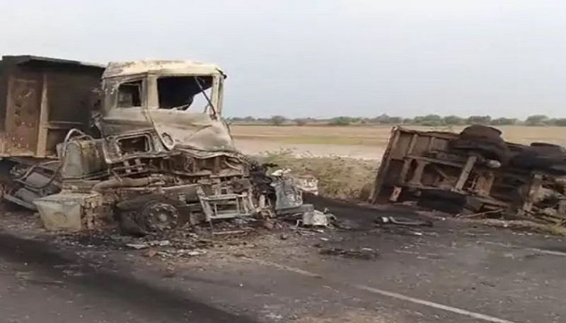 વિરમગામ લખતર હાઈવે પર બે ડમ્પર વચ્ચે અકસ્માત બાદ આગ લાગી