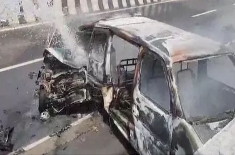 ગાઝિયાબાદમાં બે કાર વચ્ચે અકસ્માત બાદ આગ લાગી  એક વ્યક્તિ ભડથું
