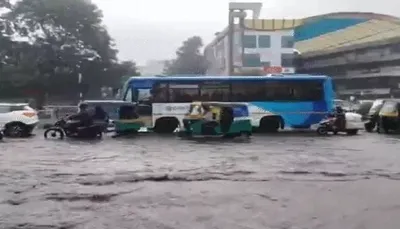 સુરત શહેરમાં છેલ્લા ત્રણ દિવસથી મેઘરાજા મન મૂકીને વરસી રહ્યા છે, ગત રાત્રિના સમયે અસહ્ય ગરમી અને બફારા બાદ આજે વહેલી સવારથી જ શરૂ થયેલા ધોધમાર વરસાદથી રસ્તાઓ પર પાણી ફરી વળ્યા હતા અને વિઝિબિલિટી (દૃશ્યતા)માં પણ ઘટાડો થયો હતો, જેના કારણે વાહનચાલકોને અવરજવરમાં ભારે મુશ્કેલીનો સામનો કરવો પડ્યો હતો. અનેક વાહનચાલકોને વરસાદ બંધ થાય ત્યાં સુધી રસ્તાની બાજુમાં થોભી જવાની ફરજ પડી હતી. શહેરના લિંબાયત વિસ્તારમાં તો મેઘરાજાએ રીતસરનું રૌદ્ર સ્વરૂપ બતાવ્યું હતું, જ્યાં માત્ર એક કલાકમાં સાડા ચાર ઇંચ જેટલો ભારે વરસાદ ખાબક્યો હતો. આ ઉપરાંત શહેરના પીપલોદ, અઠવા, ગડુમસ રોડ, વરાછા, સિટીલાઇટ, અડાજણ, રાંદેર, ડુમસ અને ઉધનામાં પણ ધોધમાર વરસાદ પડ્યો હતો. ભારે વરસાદના પગલે નીચાણવાળા વિસ્તારો પાણીમાં ગરકાવ થઈ ગયા હતા. ઉધના ત્રણ રસ્તા જેવા મુખ્ય માર્ગો પર ગોઠણસમા પાણી ભરાઈ જતા વાહન-વ્યવહારને ગંભીર અસર પહોંચી હતી. પાણી ભરાવાના કારણે અનેક વાહનો રસ્તામાં જ બંધ પડી ગયા હતા, જેના કારણે લાંબા ટ્રાફિક જામના દ્રશ્યો સર્જાયા હતા.