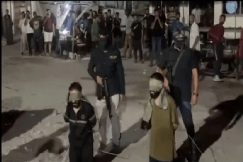 ગાઝા પટ્ટી અને વેસ્ટ બેંકમાં ઇઝરાઇલના ચાલુ હુમલાઓ વચ્ચે કટ્ટરપંથી સંગઠન હમાસનો એક વિડિઓ સોશિયલ મીડિયામાં વાયરલ થયો છે. આ વિડિઓમાં જોવા મળે છે કે, હમાસના લડવૈયાઓએ ત્રણ પેલેસ્ટીની નાગરિકોને રસ્તા પર ગોળી મારી મોતને ઘાટ ઉતાર્યા હતા. મૃતકો પર ઇઝરાઇલને મદદ કરવાનો આક્ષેપ કરવામાં આવ્યો હતો. હમાસ સંકળાયેલા ટેલિગ્રામ ચેનલ પર મુકાયેલા વિડિઓમાં ત્રણ લોકોને રસ્તા પર ઘૂંટણિયે બેસાડવામાં આવ્યા હતા, તેમની આંખો પર પટ્ટી બાંધેલી હતી, જ્યારે તેમના પાછળ ત્રણ હથિયારધારી લડવૈયાઓ ઑટોમેટિક રાઇફલ સાથે ઊભા હતા. એક લડવૈયો અરબી ભાષામાં મૃત્યુદંડનો આદેશ વાંચી રહ્યો હતો.