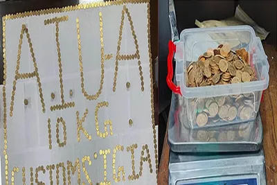 કસ્ટમ્સ વિભાગે સોશિયલ મીડિયા પ્લેટફોર્મ 'X' પર એક પોસ્ટમાં જણાવ્યું હતું કે અધિકારીઓએ 10.092 કિલો સોનાના સિક્કા જપ્ત કર્યા છે, જેની અંદાજિત કિંમત આશરે 7.8 કરોડ રૂપિયા છે.