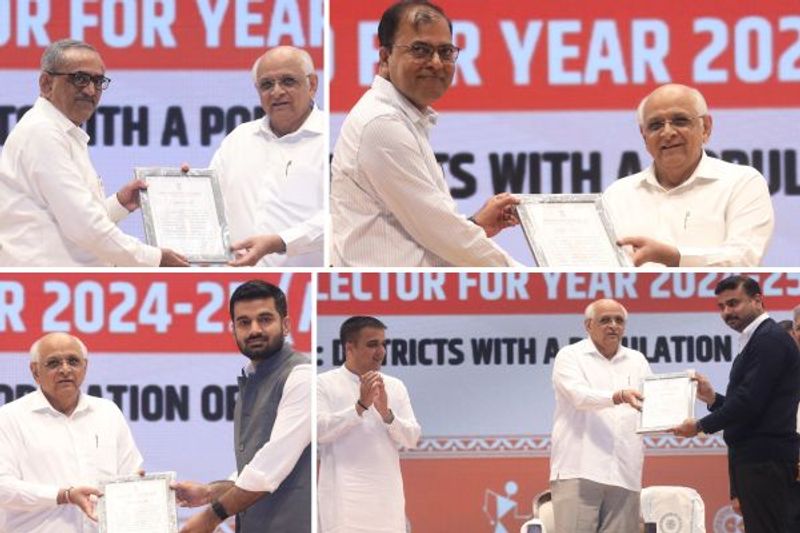 ધરમપુર, 29 નવેમ્બર, 2025ઃ Gujarat civil servants honored with “Karmayogi Award” મુખ્યમંત્રી ભૂપેન્દ્ર પટેલે ધરમપુર શ્રીમદ રાજચંદ્ર આશ્રમ ખાતે યોજાયેલી ત્રિ-દિવસીય ૧૨મી ચિંતન શિબિરના સમાપન દિવસે વર્ષ:૨૦૨૪થી ૨૦૨૫ દરમિયાન ઉત્કૃષ્ટ પ્રશાસનિક સેવા બદલ ચાર સનદી અધિકારીઓને કર્મયોગી પુરસ્કાર એનાયત કર્યા હતા. આ પ્રસંગે નાયબ મુખ્ય મંત્રી હર્ષ સંઘવી પણ ઉપસ્થિત હતા.