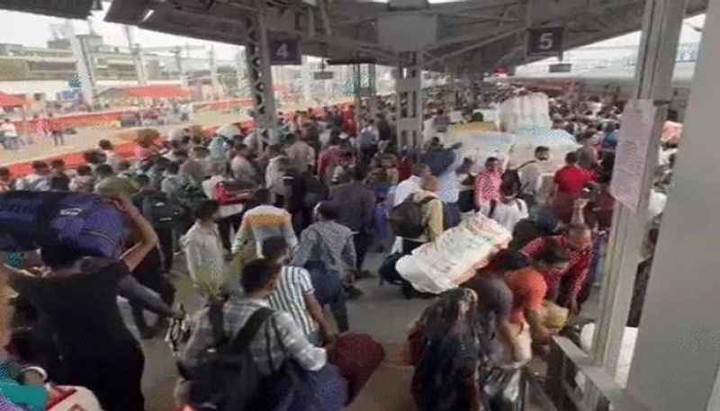 સુરતના ઊધના રેલવે સ્ટેશન પર વતન જવા માટે પરપ્રાંતિ પ્રવાસીઓની ભારે ભીડ