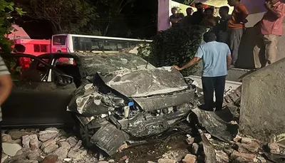- કાર દીવાલ સાથે અથડાતા ધડાકાને લીધે લોકો દોડી આવ્યા