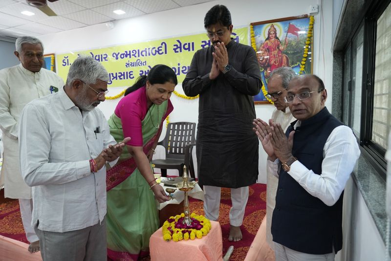 અમદાવાદઃ ડો. હેડગેવાર જન્મશતાબ્દી સેવા સમિતિ દ્વારા સંચાલિત, અમદાવાદ મહાનગર પાલિકા અને સમાજ શ્રેષ્ઠીઓના સહયોગથી ડો. વિષ્ણુપ્રસાદ ઓઝા ગ્રંથlલયના નવા અધતન ભવનનો લોકાર્પણ કાર્યક્રમ આજરોજ મેયર શ્રીમતી પ્રતિભાબેન જૈન (મેયર), શૈલેષભાઇ પટેલ (પ્રાંત કાર્યવાહ, રા.સ્વ.સંઘ ગુજરાત), વેજલપુરના ધારાસભ્ય અમિતભાઇ ઠાકર, અમદાવાદ મ્યુનિસિપલ કોર્પોરેશનના સ્ટેન્ડિંગ કમિટી ચેરમેન દેવાંગભાઈ દાની, દિલીપભાઈ બગડિયા (મ્યુનિસિપલ કાઉન્સિલર) અને સંસ્થાના ટ્રસ્ટી મહેશભાઈ પરીખની ઉપસ્થિતિમાં યોજાયો હતો.