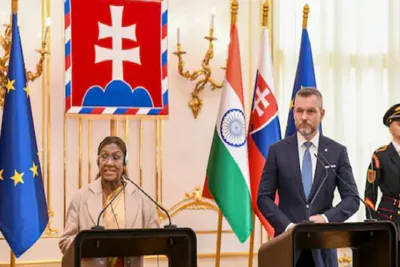 નવી દિલ્હીઃ બ્રાતિસ્લાવામાં સ્લોવાકિયા-ભારત વ્યાપાર મંચને સંબોધતા રાષ્ટ્રપતિ મુર્મુએ કહ્યું, "સ્લોવાકિયા તેની કાર્યબળ જરૂરિયાતોને પૂર્ણ કરવા માટે વિદેશમાં મહેનતુ કુશળ કામદારો અને વ્યાવસાયિકોની શોધમાં છે. મને વિશ્વાસ છે કે ભારતીય પ્રતિભા સ્લોવાકિયાની આર્થિક પ્રગતિમાં મૂલ્યવાન ભાગીદાર બની શકે છે." રાષ્ટ્રપતિ મુર્મુએ કહ્યું, "ભારત સ્લોવાકિયા સાથે વેપાર સંબંધો વધારવા માટે પ્રતિબદ્ધ છે. મારી સાથે આવેલા વિવિધ ક્ષેત્રોના પ્રતિનિધિમંડળ દ્વારા સ્પષ્ટ કરવામાં આવ્યું છે કે ભારતીય ઉદ્યોગપતિઓ સ્લોવાકિયામાં તકો શોધવામાં રસ ધરાવે છે. અમે સ્લોવાકિયા તરફથી પણ આવી જ રુચિ જોઈ છે."