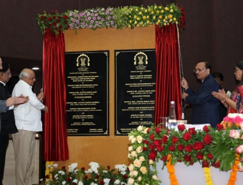 અમદાવાદઃ ગુજરાત હાઇકોર્ટ ખાતે રાજ્યના ન્યાયતંત્રની માળખાગત સુવિધાઓને વધુ મજબૂત કરતા વિવિધ પ્રકલ્પોનું મુખ્યમંત્રી ભૂપેન્દ્ર પટેલ અને સુપ્રીમ કોર્ટના જસ્ટિસ સૂર્યકાંતના હસ્તે લોકાર્પણ-ખાતમુહૂર્ત કરવામાં આવ્યું હતું. આ પ્રસંગે ગુજરાત હાઇકોર્ટના ચીફ જસ્ટિસ સુનિતા અગ્રવાલ તેમજ કાયદા મંત્રી ઋષિકેશ પટેલ ઉપસ્થિત રહ્યા હતા.
