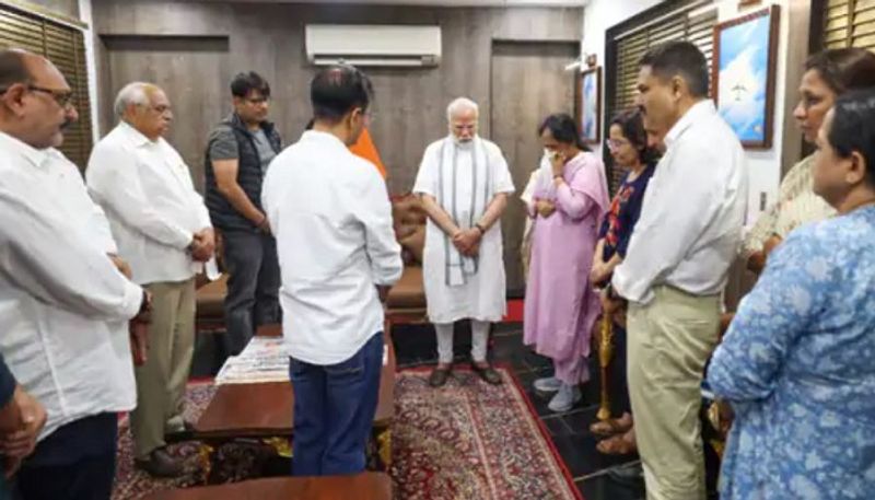 અમદાવાદઃ શહેરમાં ગઈકાલે લંડન જતું એર ઈન્ડિયાનું વિમાન દૂર્ઘટનાનો ભોગ બન્યું હતું. જેમાં વિમાનના 230 પ્રવાસીઓ અને 12 સ્ક્રુ મેમ્બરના મોત નિપજ્યા હતા. આ વિમાનમાં પ્રવાસ કરી રહેલા રાજ્યના પૂર્વ મુખ્યમંત્રી વિજય રૂપાણીનું પણ દુ:ખદ નિધન થયું હતું. પૂર્વ મુખ્યમંત્રી વિજય રૂપાણીના નિધનના સમાચારથી ગુજરાતના રાજકીય વર્તુળમાં શોકનો માહોલ છવાયો છે. તેમના પત્ની અંજલિબેન રૂપાણી લંડનથી સ્પેશિયલ ચાર્ટડ પ્લેન મારફતે અમદાવાદ એરપોર્ટ પહોંચ્યા હતા અને ત્યાંથી ગાંધીનગર તેમના નિવાસ સ્થાને પહોંચતા અંજલીબેનને સાત્વના આપવા માટે મંત્રીઓ ભાજપના નેતાઓ દોડી ગયા હતા. વડાપ્રધાન નરેન્દ્ર મોદીએ પૂર્વ મુખ્યમંત્રી રૂપાણીનાં પત્ની અંજલિબેનને મળીને સાંત્વના પાઠવી હતી. ત્યાર બાદ પીએમ મોદી દિલ્હી જવા રવાના થયા હતા.