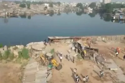 અમદાવાદ મ્યુનિ,કોર્પોરેશને પોલીસની મદદથી શહેરના ચંડોળા તળાવ વિસ્તારના દબાણો હટાવવા મેગા ઓપરેશન હાથ ધર્યું છે. વર્ષો જુની ગેરકાયદે વસાહત પર બુલડોઝર ફેરવી દેવામાં આવ્યું હતું. આજે ત્રીજા દિવસે પણ દબાણ હટાવ કામગીરી ચાલુ રહી હતી. એએમસીની મશીનરી અને મેનપાવર દ્વારા 4,000 જેટલા નાના-મોટા કાચા-પાકા મકાનો અને ઝૂંપડાંને તોડી આશરે 1.5 લાખ ચોરસ મીટર જેટલી સરકારી જગ્યા પરના દબાણો દૂર કરાયાં છે. શહેરના કાંકરિયા તળાવ બાદ સૌથી મોટા એવા ચંડોળા તળાવ પર આ દબાણો દૂર કર્યા બાદ હવે તેના પર ડેવલપમેન્ટની કામગીરી ખૂબ જ ઝડપી કરવામાં આવશે. ચંડોળા તળાવને નર્મદાના પાણીથી ભરવામાં આવશે.