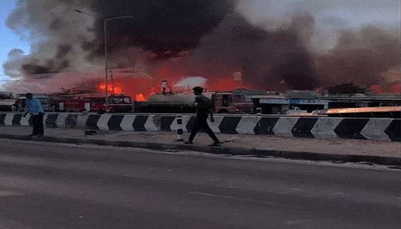 ભચાઉ-ગાંધીધામ હાઈવે પર ટીમ્બરમાર્ટમાં લાગી વિકરાળ આગ