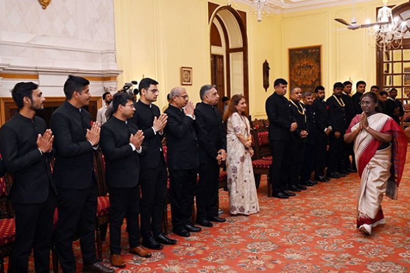 ભારતીય નૌકાદળ સામગ્રી વ્યવસ્થાપન સેવા અને ભારતીય નૌકાદળ શસ્ત્રાગાર સેવાના અધિકારી તાલીમાર્થીઓએ રાષ્ટ્રપતિ સાથે કરી મુલાકાત