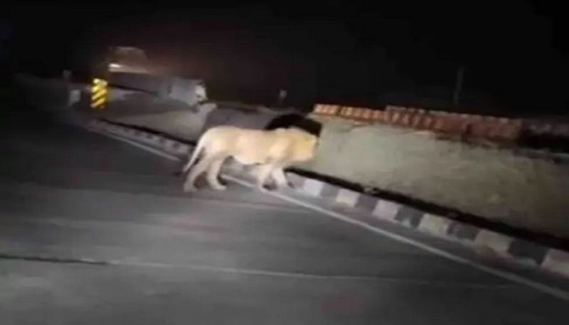 સોમનાથ-ભાવનગર હાઈવે પર રાત્રે સિંહની લટારથી વાહનો થંભી ગયા