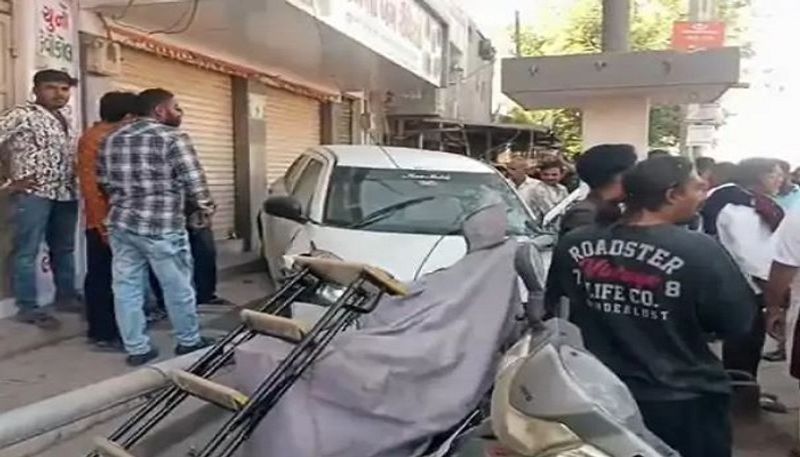 • બીજો યુવાન પૂરફાટ ઝડપે કારને જોઈને દુકાનના ઓટલાં પર ચડી જતાં બચી ગયો