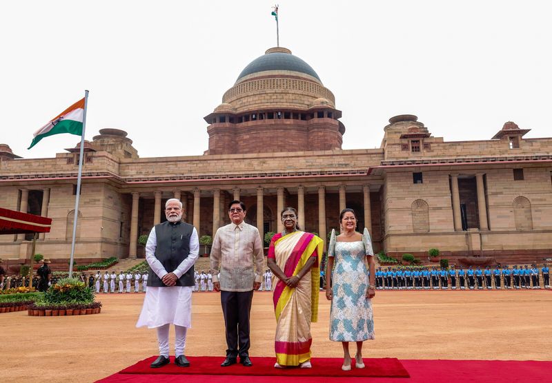નવી દિલ્હીઃ ફિલિપાઈન્સના રાષ્ટ્રપતિ ફર્ડિનેન્ડ રોમુઆલ્ડેઝ માર્કોસ જુનિયર ભારતની પાંચ દિવસની સત્તાવાર મુલાકાતે છે. આજે રાષ્ટ્રપતિ ભવનમાં રાષ્ટ્રપતિ દ્રૌપદી મુર્મુ અને પ્રધાનમંત્રી નરેન્દ્ર મોદીએ તેમનું ઔપચારિક સ્વાગત કર્યું હતું. રાષ્ટ્રપતિ માર્કોસને ગાર્ડ ઓફ ઓનર આપીને સન્માનિત કરવામાં આવ્યા હતા.