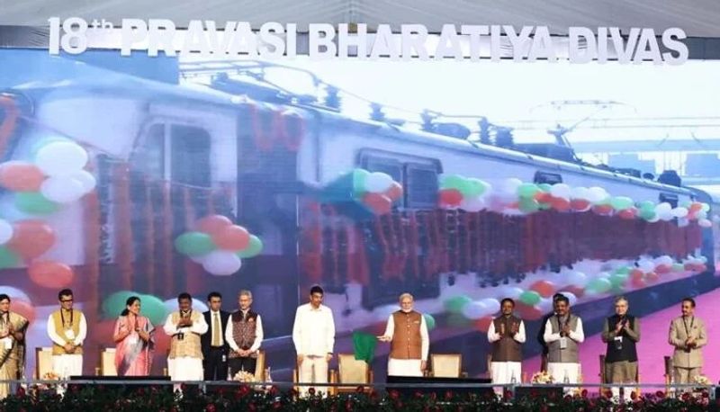 ભુવનેશ્વરઃ પ્રધાનમંત્રી નરેન્દ્ર મોદીએ ગુરુવારે ભુવનેશ્વરમાં 18મા પ્રવાસી ભારતીય દિવસ સંમેલન દરમિયાન NRI માટે અત્યાધુનિક પ્રવાસી ટ્રેન 'પ્રવાસી ભારતીય એક્સપ્રેસ'ને રિમોટલી લીલી ઝંડી બતાવી હતી. ખાસ કરીને વિદેશીઓ માટે રચાયેલ, આ ટ્રેન 'પ્રવાસી તીર્થ દર્શન યોજના'નો એક ભાગ છે, જે વિદેશ મંત્રાલય અને ભારતીય રેલ્વે કેટરિંગ અને પર્યટન નિગમ (IRCTC) વચ્ચેના સહયોગથી શરૂ થઈ છે.