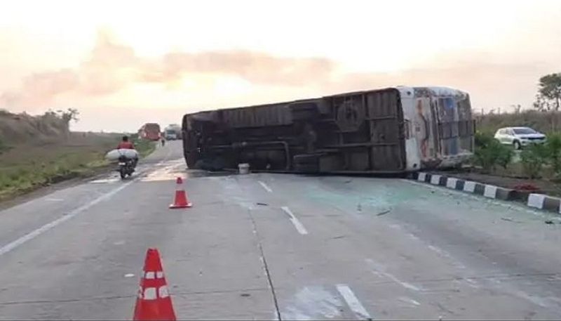 ઈન્દોર-અમદાવાદ હાઈવે પર ખાનગી બસ પલટી, 13 પ્રવાસીઓને ઈજા