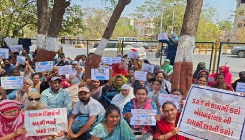 શાળાઓમાં વ્યાયમ શિક્ષકોની કાયમી ભરતીની માગ સાથે ગાંધીનગરમાં ધરણાં