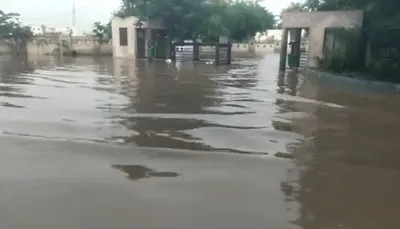 લીબડી તાલુકા સેવા સદનના કેમ્પસમાં ઢીંચણસમા ભરાઈ રહેતા વરસાદી પાણી