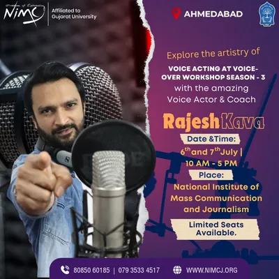 શ્રી રાજેશ કાવા હિન્દી ફિલ્મ ઉદ્યોગના જાણીતા અને સિનિયર વોઈસ ઓવર/ ડબિંગ આર્ટિસ્ટ છે. તેઓ સિંઘમ, રોબો, તારક મહેતા કા છોટા ચશ્મા (એનિમેશન), કેજીએફ, સ્કવિડ ગેમ,હેરી પોટર સહિતની અનેક ભારતીય અને હોલીવુડની ફિલ્મો/ વેબ સિરીઝના મહત્વના પાત્રો માટે વોઇસ ઓવર/ ડબિંગ કરી ચૂક્યા છે. એનઆઇએમસીજેના અધ્યતન ક્લાસરૂમ અને સ્ટુડિયો સેટઅપમાં આ બે દિવસનો વર્કશોપ યોજાશે. ભાગ લેનારા તમામને સંસ્થા દ્વારા પ્રમાણપત્રો અપાશે તેમ સંસ્થાના નિયામક પ્રો.(ડો) શિરીષ કાશીકરે જણાવ્યું હતું.
