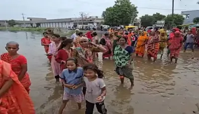 સુરેન્દ્રનગરમાં વરસાદને લીધે અનેક સોસાયટીઓમાં પાણી ભરાતા લોકો મુશ્કેલીમાં મુકાયા છે. મ્યુનિના વોર્ડ નંબર 5 માનવ મંદિર પાછળના વિસ્તારમાં પ્રાથમિક સુવિધાઓનો અભાવ જોવા મળી રહ્યો છે. આ મુદ્દે 200થી વધુ મહિલાઓએ રસ્તા પર આવીને વિરોધ પ્રદર્શન કર્યું હતું. શહેરના આજુબાજુના પાંચ ગામને જોડતો રસ્તો પણ તળાવ જેવો બની ગયો છે. પરિસ્થિતિ એટલી ગંભીર છે કે બાળકોને શાળાએ જવા માટે પાણીમાંથી પસાર થવું પડે છે. બીમાર દર્દીઓ માટે 108 એમ્બ્યુલન્સની અવરજવર પણ મુશ્કેલ બની છે. અનેક બાળકો અને વૃદ્ધો પાણીમાં પડવાથી ઈજાગ્રસ્ત થયા છે. સ્થાનિક રહીશો અને મહિલાઓએ અનેક વખત રજૂઆત કરી છે, પરંતુ કોઈ કાર્યવાહી થઈ નથી. તેમણે લાગતા વળગતા તંત્ર પાસે તાત્કાલિક યોગ્ય પગલાં લેવાની માંગ કરી છે.