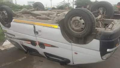 અમદાવાદમાં SG હાઈવે પર છારોડી નજીક સ્કૂલ વાન પલટી, કોઈ જાનહાની નહીં