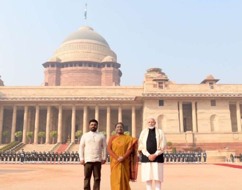 નવી દિલ્હીઃ શ્રીલંકાના રાષ્ટ્રપતિ અનુરા કુમારા દિસાનાયકે તેમની ભારત મુલાકાતના બીજા દિવસે સોમવારે સવારે રાષ્ટ્રપતિ ભવન પહોંચ્યા હતા. રાષ્ટ્રપતિ દ્રૌપદી મુર્મુ અને વડાપ્રધાન નરેન્દ્ર મોદીએ તેમનું સ્વાગત કર્યું હતું. તેમને ગાર્ડ ઓફ ઓનર આપવામાં આવ્યું હતું. અગાઉ, રાષ્ટ્રપતિ અનુરા કુમારા દિસનાયકેએ ગાર્ડ ઓફ ઓનરનું નિરીક્ષણ કર્યું હતું. ભારતીય રાષ્ટ્રપતિ દ્રૌપદી મુર્મુના ઓફિશિયલ એક્સ એકાઉન્ટ પર આને લગતો એક વીડિયો શેર કરવામાં આવ્યો છે.