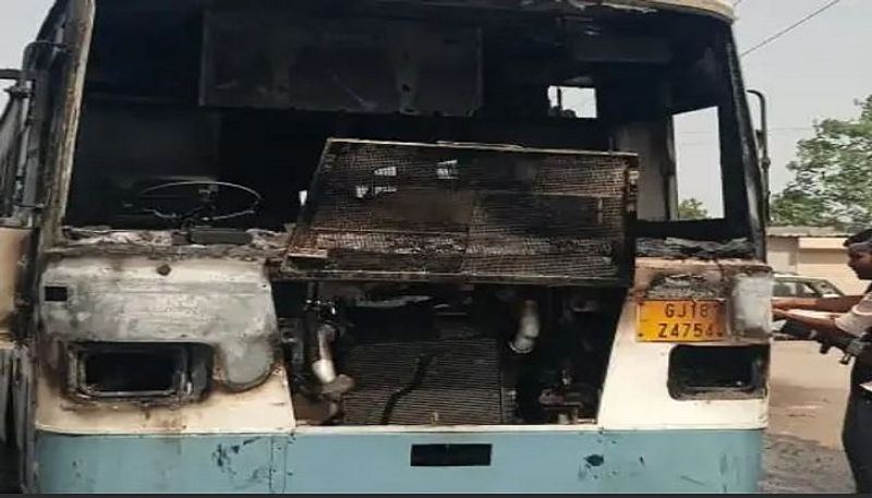 ભૂજના શેખીપુર ત્રણ રસ્તા પર એસટી બસમાં આગ લાગી, પ્રવાસીઓનો બચાવ