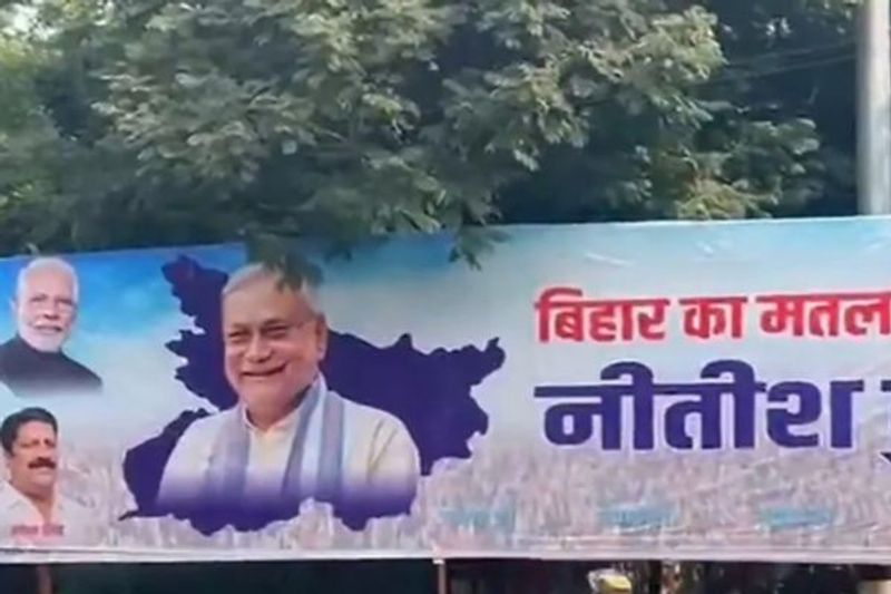 પટણામાં બપોરે એકાએક મોટા મોટા હોર્ડિંગ લાગ્યા "બિહાર કા મતલબ નીતિશ કુમાર"