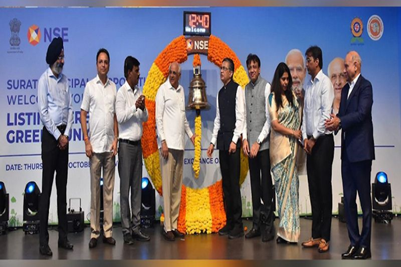 NSE ખાતે સુરત મનપાના 200 કરોડના ગ્રીન બ્રોન્ડની રિંગિંગ સેરેમની યોજાઈ