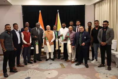 નવી દિલ્હીઃ પ્રધાનમંત્રી શ્રી નરેન્દ્ર મોદીએ ગુયાનાના પ્રમુખ ક્રિકેટ ખેલાડીઓ સાથેની વાતચીતમાં કહ્યું હતું કે ક્રિકેટે ભારત અને ગુયાનાને નજીક લાવ્યા છે અને સાંસ્કૃતિક જોડાણોને વધુ ગાઢ બનાવ્યા છે.