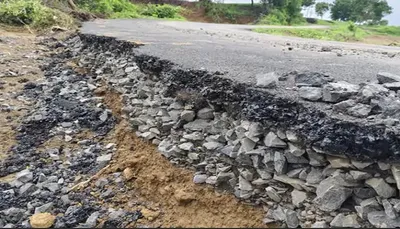- પ્રથમ વરસાદમાં રોડ ધોવાઈ ગયો,