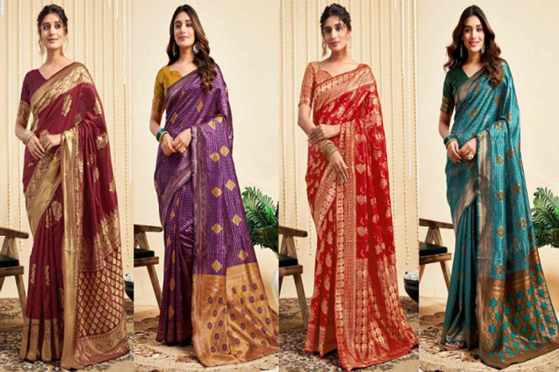 ઓર્ગેન્ઝા ફ્લોરલ સાડી - લગ્ન કે કોઈ ખાસ પ્રસંગે ઓર્ગેન્ઝા ફ્લોરલ સાડી પહેરવાથી તમને એક સુંદર અને શાહી દેખાવ મળે છે. આ સાડીઓ ફ્લોરલ એમ્બ્રોઇડરી અથવા પ્રિન્ટ સાથે પારદર્શક ટેક્સચરમાં આવે છે, જે કોઈપણ પ્રસંગે તમારી સુંદરતામાં વધારો કરે છે.