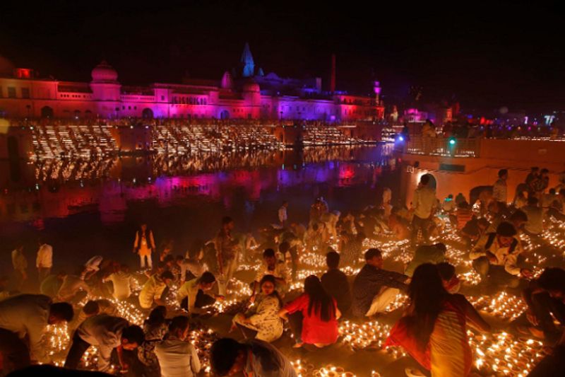 અયોધ્યાઃ ભગવાન રામના જન્મસ્થળ અયોધ્યામાં દિવાળીની ખૂબ જ ધામધૂમથી ઉજવણી કરવામાં આવે છે. સરયુ નદીના કિનારે આવેલા રામ કી પૈડી ઘાટને હજારો માટીના દીવાઓથી શણગારવામાં આવ્યા છે.